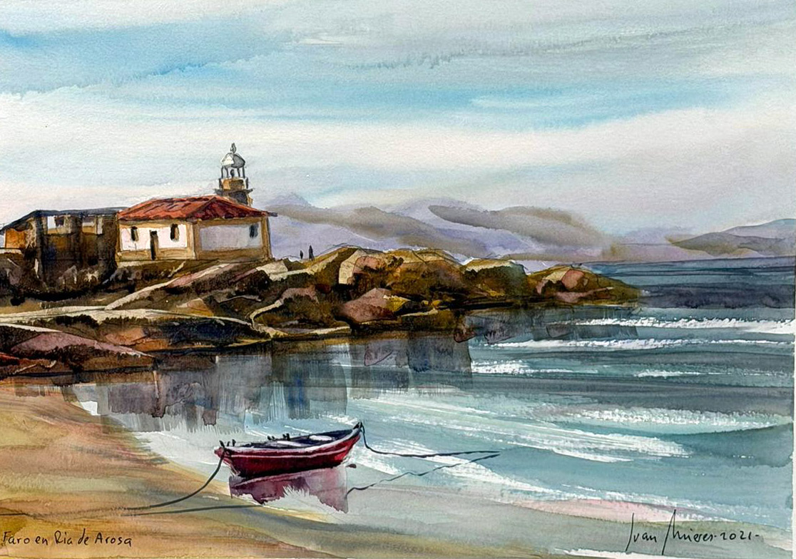 1 Acuarela Juan Mieres Faro en Ría de Arosa