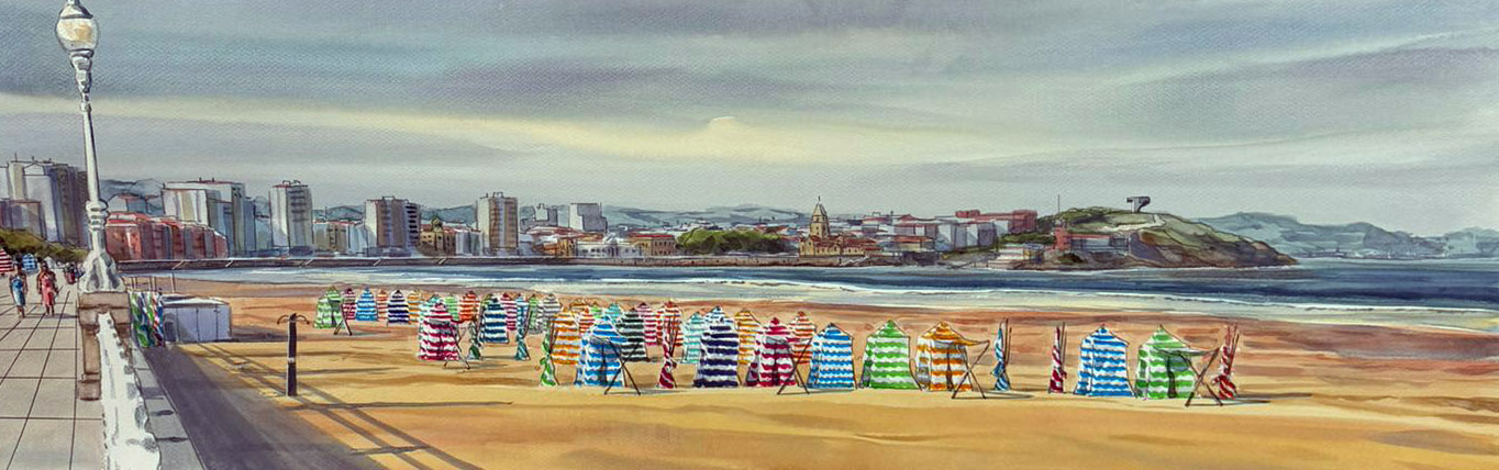 1 Acuarela Juan Mieres Las Casetas de Xixón
