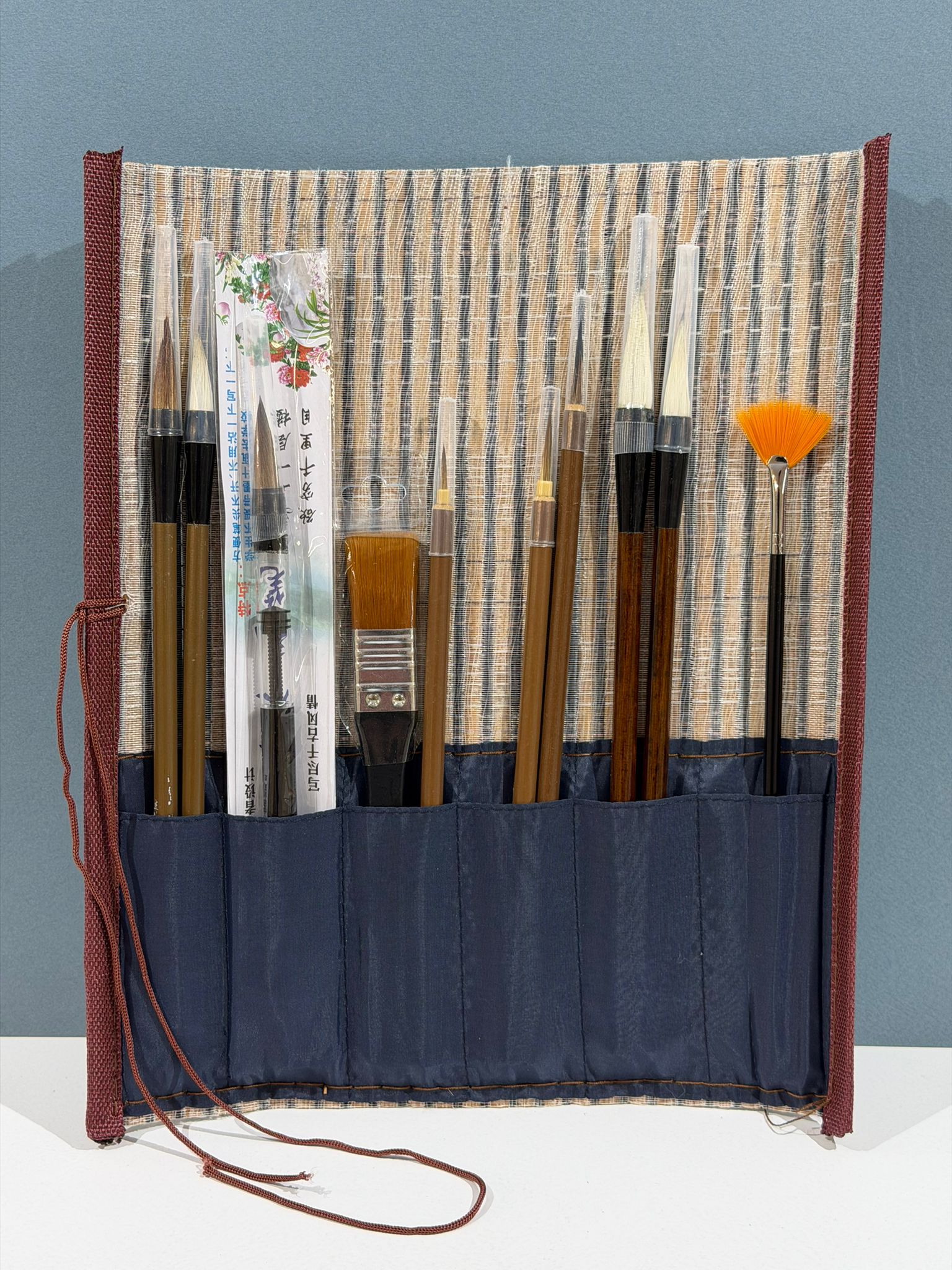 1 Estuche de pinceles chinos para acuarela y caligrafía contiene 3 pinceles de pelo de lobo 3 pinceles de pelo de oveja 1 abanico de nylon 1 paletilla de nylon y 1 pincel de agua